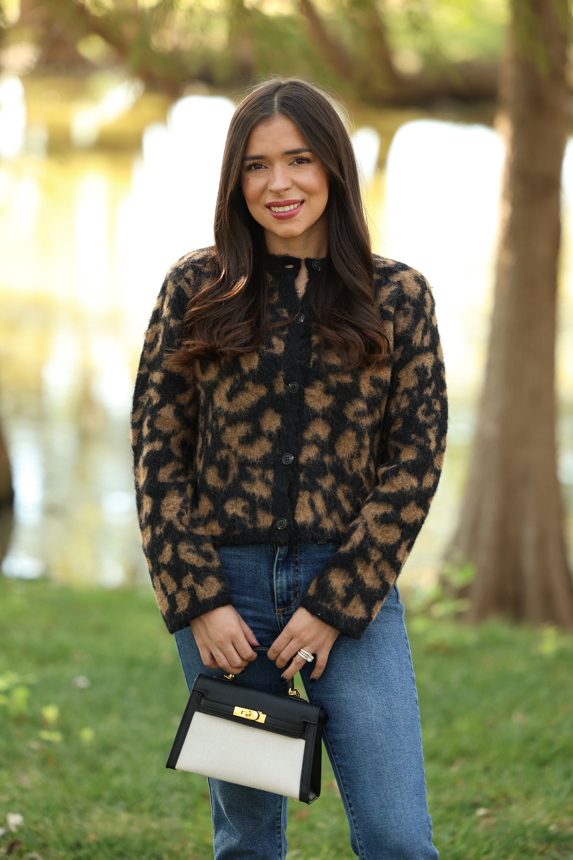 Leopard is the pattern of the season and this cardigan is perfect. A nice, fuzzy cardigan with a crop fit (but not too cropped).