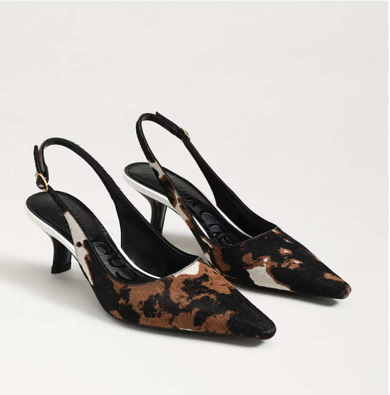 The perfect sling heel to complete an outfit. Highland cow, brown multi color.