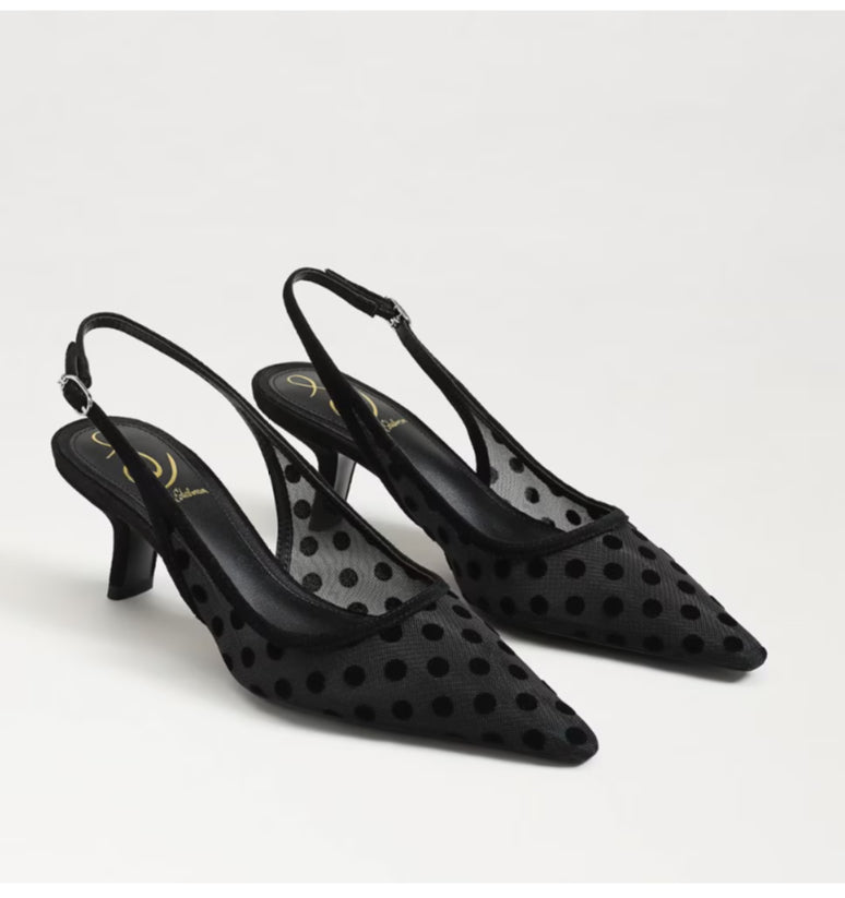 Meet the Bianka Mesh - these mesh pointed slingbacks are adorned with all-over polka dots and a contrast trim. This slingback looks like a surprise party peeking out from your best tailored pieces.