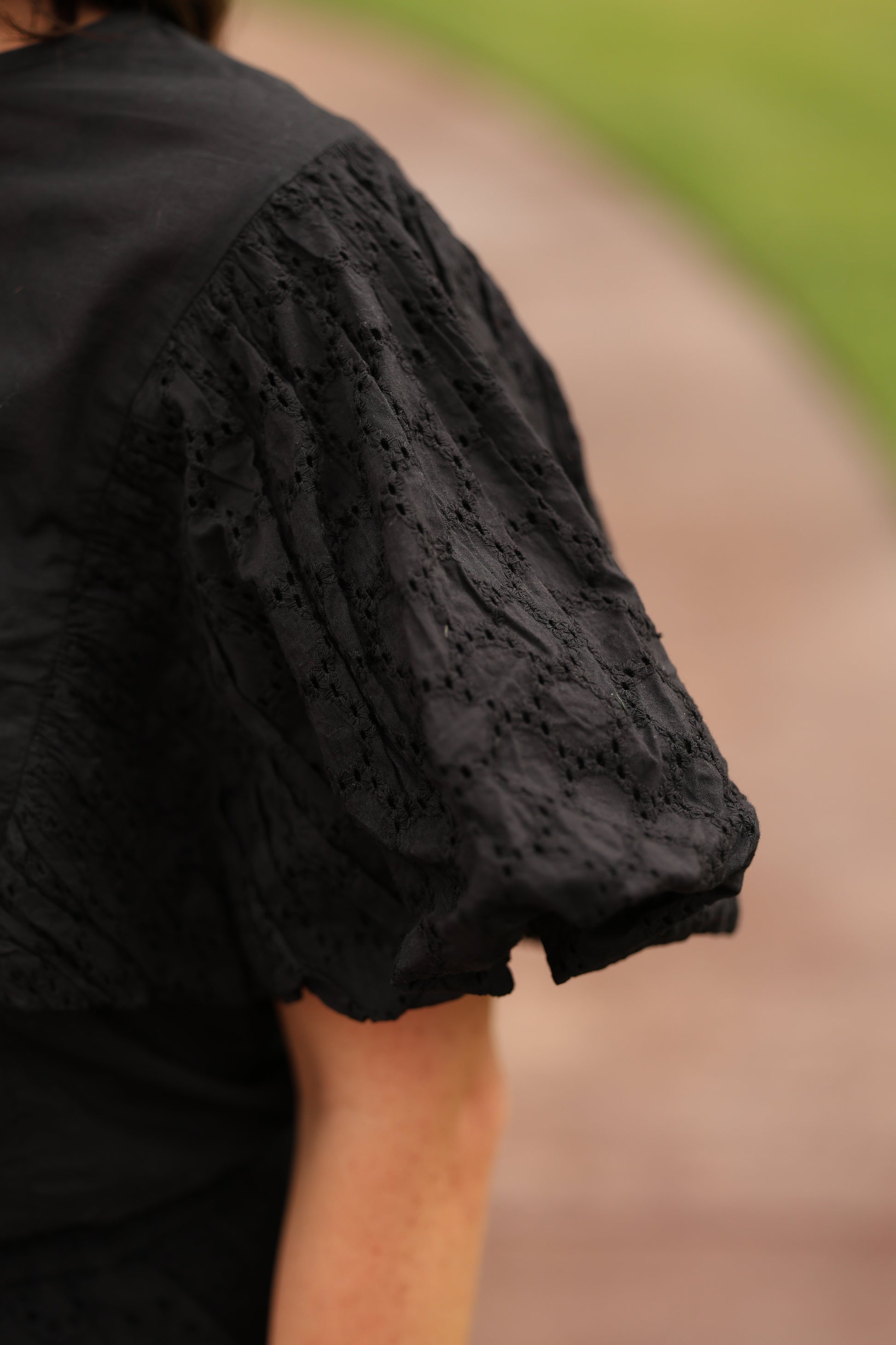 Adorable black 2 piece set with eyelet detail. Perfect worn together or can even been separated for more styling options.