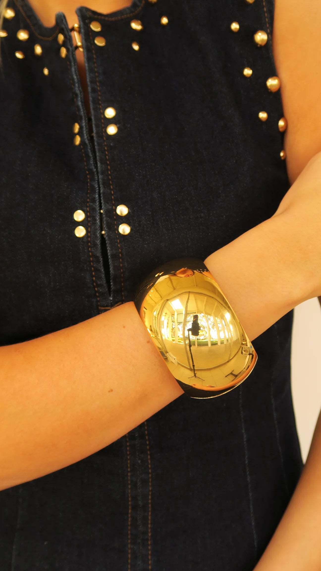 This bracelet is a statement! This large bangle is available in gold or silver.