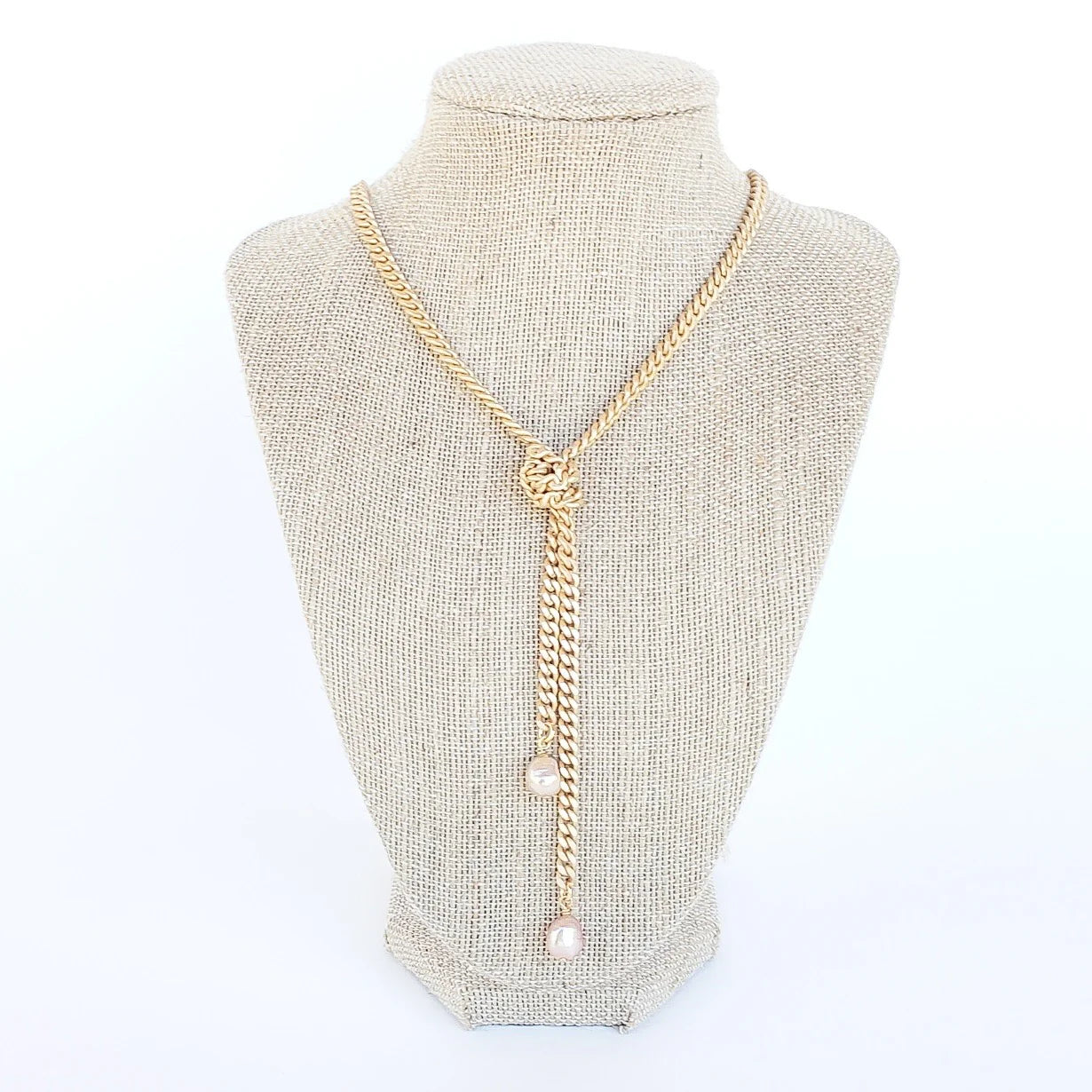 Knotted Curb Chain Necklace w/ Mini Pearls