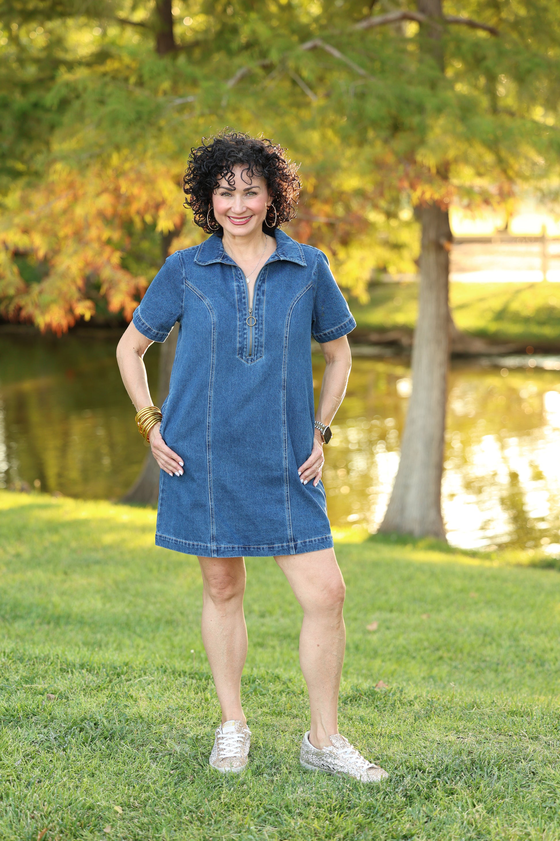 If it is one thing every closet needs, it’s a denim dress. Make sure you are on trend with this adorable short sleeve collared dress.